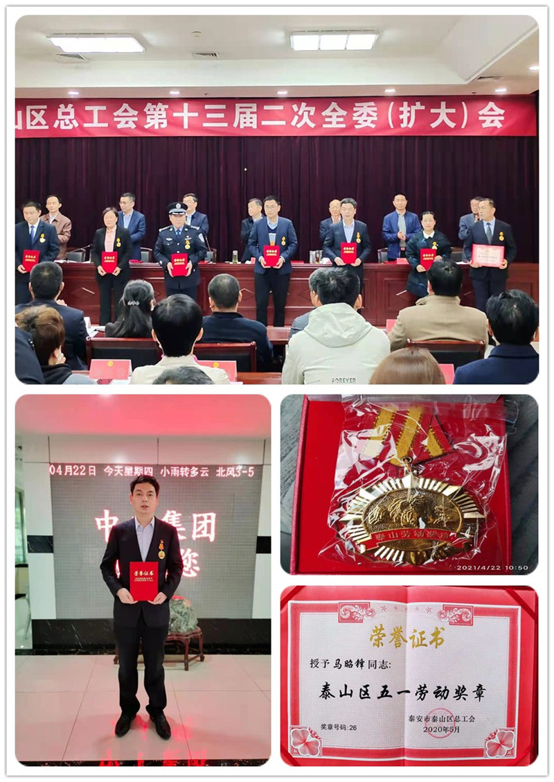 我單位馬昭鋒同志榮獲“泰山區(qū)五一勞動獎章”